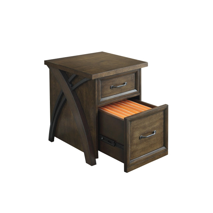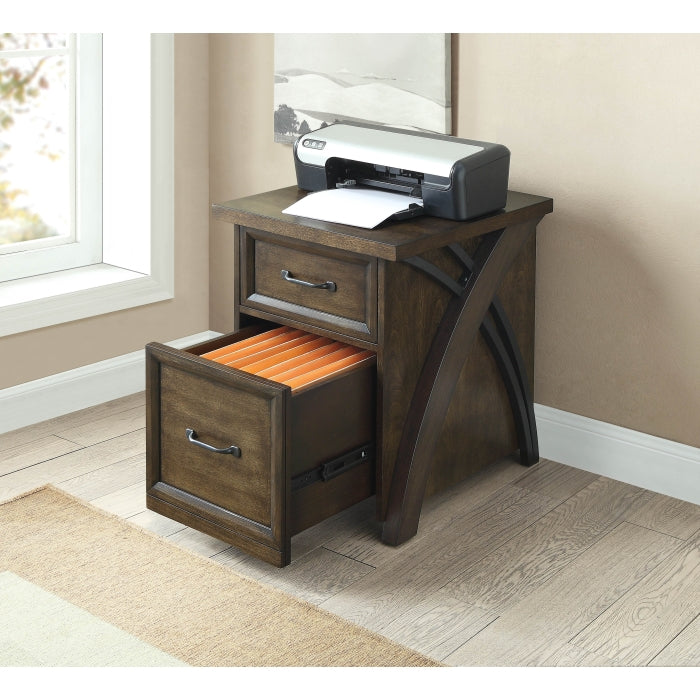 Designed with contemporary styling and conventional functionality in mind, the Isidore filing cabinet is perfect for your home office. Though compact in size, a generous top surface will easily hold your printer or scanner, allowing you to maximize your office space. Two spacious drawers with ball-bearing glides are perfect for organizing your files. Mango wood solids and veneers combined with a steel frame ensure long-lasting durability, while ash brown wood with gunmetal accents guarantee your cabinet will look great with your existing décor. Need to move your cabinet? It will be a cinch with built-in casters designed to glide it where you need with ease. Coordinating desk also available. Also available in grey.