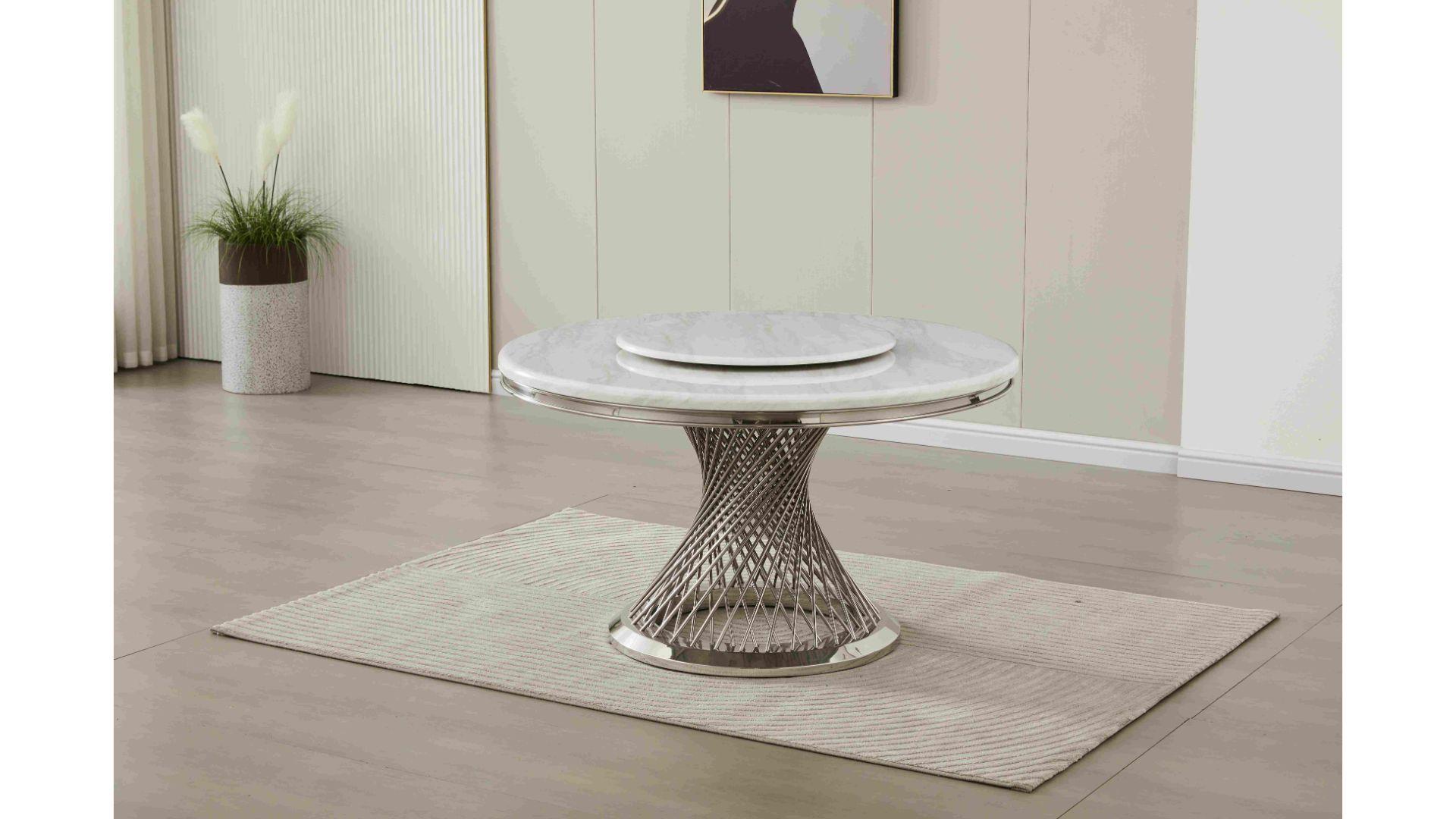 Experience dining like never before with the Remi Marble Dining Table. Featuring an elegant marble top, this table is not just a statement piece but also comes with a convenient Lazy Susan, perfect for effortless serving. Supported by a sleek chrome base, the Remi dining table exudes modern sophistication while offering practical functionality. Ideal for entertaining guests or intimate family meals, this table adds a touch of luxury and contemporary flair to your dining space.