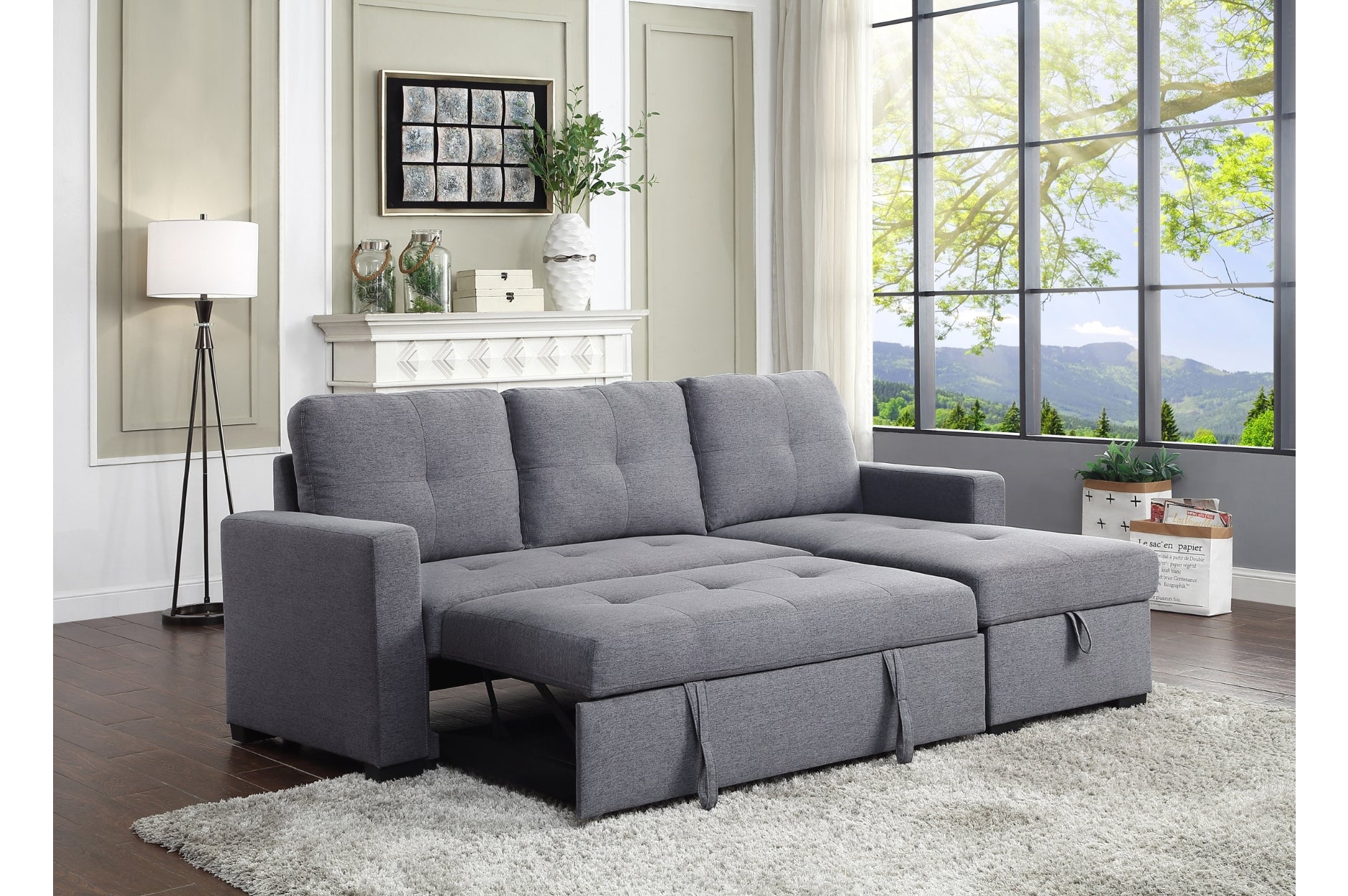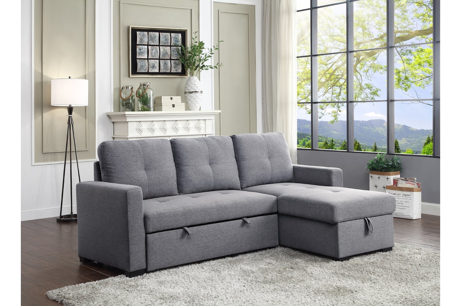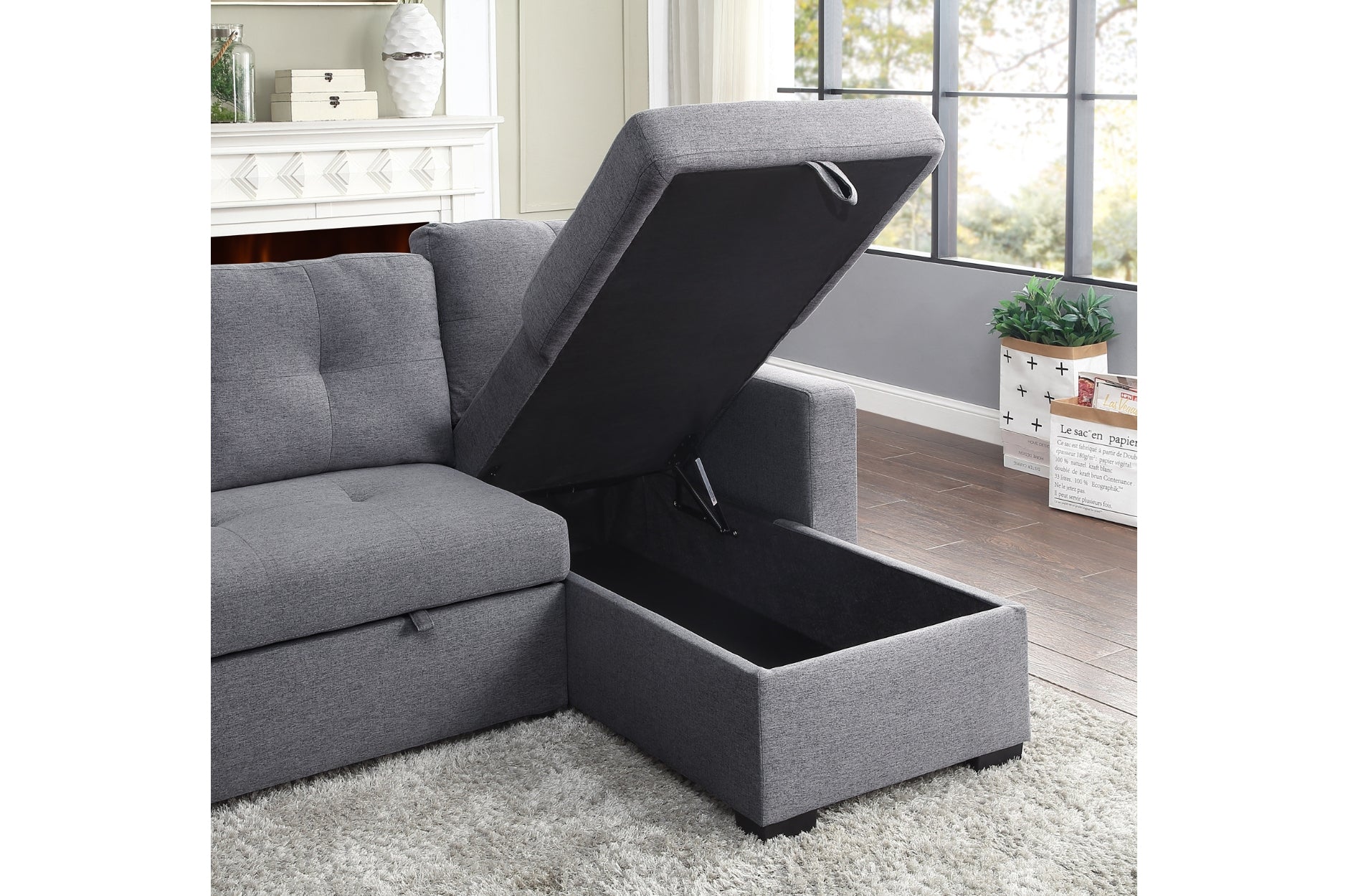 Provide comfort and convenience in your living room with the splendidly adaptable Carlton II sofa bed. A reversible design allows the chaise to be assembled on either side of the loveseat, providing you with an optimal layout no matter how your room is configured. Soft linen-like fabric with tufted cushions adds a casual elegance to an otherwise understated piece. Have an unexpected overnight guest? Simply pull out and pop up the hidden bed portion to create a roomy sleeping space, plus you can store extra pillows and blankets in the lift-up storage chaise. As far as your living room needs are concerned, you can't go wrong with the Carlton II sofa bed.