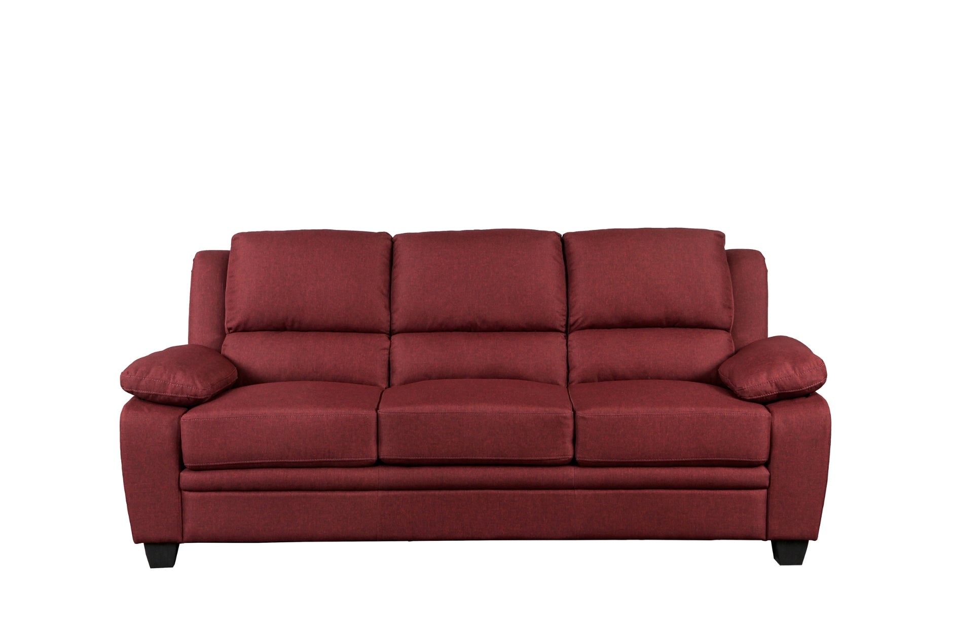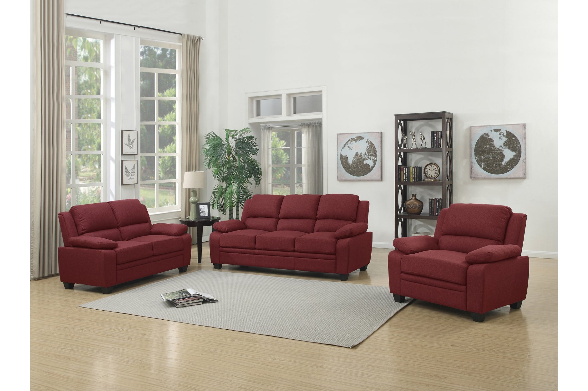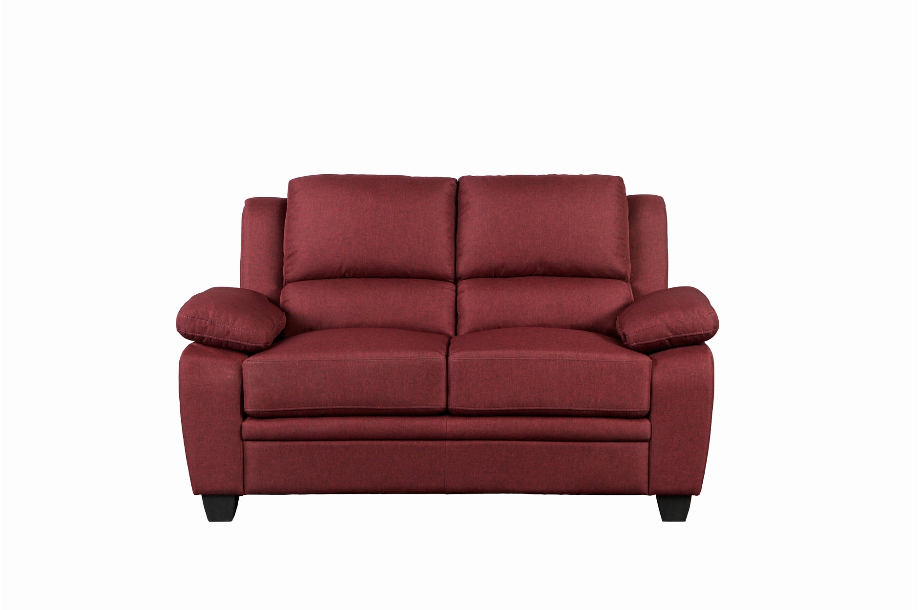 Double-cushioned backs and plush overstuffed headrests adorn the pleasantly appointed Darien seating collection. The gentle billowing of the back cushions provide a back high enough to rest your head, while generously stuffed pillows over the arms invite you to lean or lie down for a cozy nap. Warm brown fabric upholstery gives the Darien collection the ability to blend flawlessly with many décors and adds warmth to your living room.